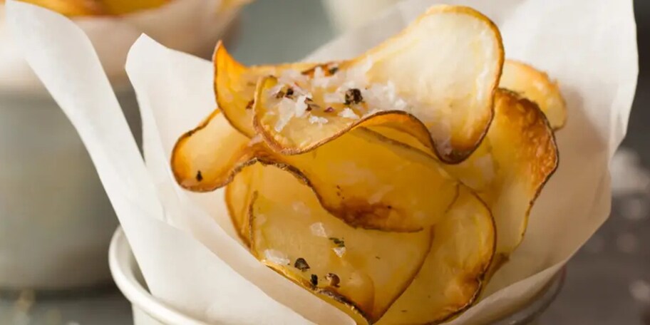 Bramborové lupínky s octem a pepřovou omáčkou