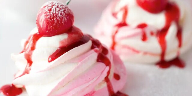 Dvoubarevné pusinky se šlehačkou a ovocem