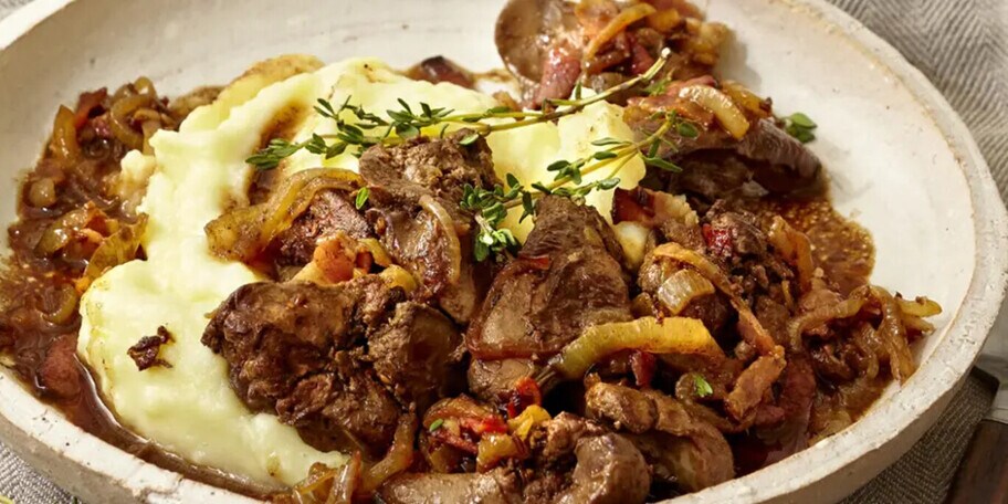 Kuřecí játra s bramborovou kaší