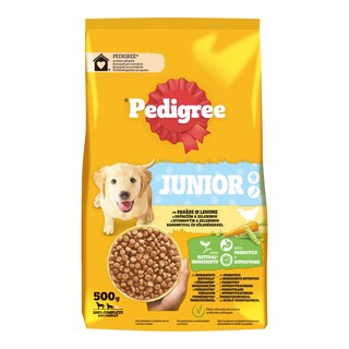 Sušené drůbeží bílkoviny, pšenice (17,5 %), kukuřice (16,5 %), hovězí vnitřnosti (14,0 %), živočišné tuky, rýže (4,0 %), dochucovací masové výtažky, sójová mouka, sušená dužina cukrové řepy (3,0 %), glycerol, minerální látky, kukuřičná krupice.