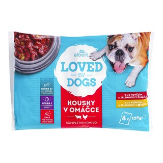 Směs hovězího a jater: Maso a výroky živočišného původu (40 %, přírodní^ 93 %; včetně směsi hovězího 6 % a vepřových jater 9 % v každém kousku**), rostlinné bílkovinné extrakty, cereálie, oleje a tuky, minerální látky (0,6 %), výrobky rostlinného původu^ (včetně sušené řepné dužiny 0,5 %).Kuřecí: Maso a výrobky živočišného původu (40 %, přírodní^ 93 %; včetně kuřecího 14 % a vepřových jater 9 % v každém kousku**), rostlinné bílkovinné extrakty, cereálie, oleje a tuky, minerální látky (0,6 %), výrobky rostlinného původu^ (včetně sušené řepné dužiny 0,5 %).Směs jehněčího a jater: Maso a výrobky živočišného původu (40 %, přírodní^ 93 %; včetně směs jehněčího 6 % a vepřových jater 9 % v každém kousku**), rostlinné bílkovinné extrakty, cereálie, oleje a tuky, minerální látky (0,6 %), výrobky rostlinného původu^ (včetně sušené řepné dužiny 0,5 %). Drůbež: Maso a výrobky živočišného původu (40 %, přírodní^ 93 %; včetně drůbežího 14 % a vepřových jater 9 % v každém kousku**), rostlinné bílkovinné extrakty, cereálie, oleje a tuky, minerální látky (0,6 %), výrobky rostlinného původu^ (včetně sušené řepné dužiny 0,5 %).^přírodní ingredience.**kousek odpovídá zpravidla 48 % produktu.