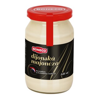 Voda, řepkový olej, cukr, ocet kvasný lihový, pasterovaný VAJEČNÝ ŽLOUTEK (3,2 % hm.), modifikovaný škrob, HOŘČICE (voda, HOŘČIČNÁ semena, ocet kvasný lihový, cukr, jedlá sůl, koření), jedlá sůl, okurky (1,4 % hm.), cibule, emulgátor (polyglycerolpolyricinoleát), kyseliny (kyselina mléčná, kyselina citronová), worcestrová omáčka (voda, cukr, aromata, koření, rajčatové pyré, švestkové pyré, ocet kvasný lihový, bílé víno, jedlá sůl), pažitka, antioxidant (kalcium-dinatrium EDTA), aromata.