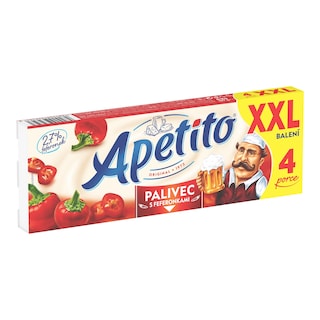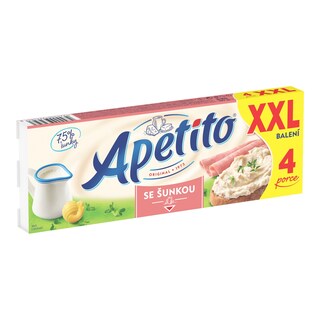 Obnovené odstředěné MLÉKO, SÝRY, voda, MÁSLO, šunka 7,5 % [vepřové maso z kýty 75 %, voda, sůl, konzervační látka E 250, extrakt vepřové bílkoviny, kořenící přípravek (koření, paprikový olej, extrakty kvasinek)], MLÉČNÉ BÍLKOVINY, tavicí soli (E 542, E 450), stabilizátory modifikovaný škrob a karagenan, sůl, regulátor kyselosti kyselina citronová, aroma.