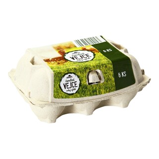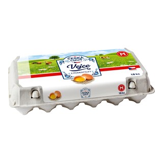 Vejce různých velikostí. Minimální celková hmotnost vajec v balení je 318 g.