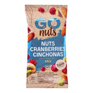 ARAŠÍDY (22 %), cukr, sušená rebarbora (14,5 %), plátky banánu (11 %), blanšírované MANDLE (10 %), sušená mochyně (10 %), sušené brusinky (9 %), kokosový olej, ARAŠÍDOVÝ olej, sůl, řepkový olej, slunečnicový olej, med, bramborový škrob, přírodní aroma.
