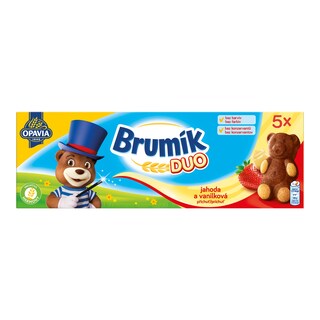 Jemné pečivo (67,5 %) (PŠENIČNÁ mouka, cukr, rostlinný olej (palmový), VEJCE, zvlhčující látky (sorbitol, glycerol), fruktózový sirup (kukuřičný), glukózový sirup (kukuřičný), sušená SYROVÁTKA, PŠENIČNÝ škrob, emulgátor (estery polyglycerolu s mastnými kyselinami), kypřicí látky (difosforečnany, hydrogenuhličitan sodný), jedlá sůl, aroma, konzervant (sorban draselný), regulátor kyselosti (kyselina citronová), zahušťovadlo (xanthan)). Žlutá poleva (15,8 %) (cukr, rostlinný olej (palmový), emulgátor (slunečnicový lecitin), aroma, barvivo (beta-karoten)). Banánová omáčka (10 %) (cukr, maltodextrin (kukuřičný), zvlhčující látky (sorbitol, glycerol), banánové pyré (5 %), jablečná šťáva z koncentrátu, bramborový škrob, zahušťovadlo (pektiny), regulátor kyselosti (kyselina citronová), konzervant (sorban draselný), jedlá sůl, aroma, barvivo (beta-karoten)). Barevné dražé (6,7 %) (cukr, rostlinný olej (palmový), rýžový škrob, kakaový prášek, zahušťovadlo (arabská guma), kukuřičný škrob, barvicí koncentrát z červené řepy, barviva (karoteny, karamel, měďnaté komplexy chlorofylů a chlorofylinů, kurkumin), emulgátor (slunečnicový lecitin), lešticí látka (karnaubský vosk), aroma).