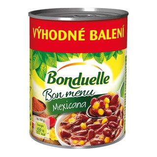 Červené fazole 36 %. Omáčka 64 %: pitná voda, rajský protlak 7 %, cukr, slunečnicový olej, jedlá sůl, sušená cibule, modifikovaný kukuřičný škrob, česnek, směs koření 0,3 % z toho chilli koření 0,01 %, byliny, aroma. Zeleninový výrobek pálivý.