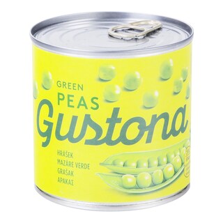 Hrášek velmi jemný (Ø<8,2 mm), pitná voda, cukr, jedlá sůl, přírodní aroma.
