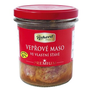 Uzenina 49 % hm., (kuřecí maso, kuřecí kůže, pitná voda, kuřecí mechanicky separované maso, vepřová bílkovina, jedlá sůl, modifikovaný kukuřičný škrob, regulátor kyselosti: E 262, E 330, E 331, E 296; emulgátor: E 450; antioxidant: E316; látka zvýrazňující chuť a vůni: glutaman sodný; kouřové aroma, extrakty z koření, hroznový cukr, barvivo: E 120; bramborový škrob, zahušťovadlo: E 412; stabilizátor: E 466; želírující látka: E 407a; konzervační látka: dusitan sodný); pitná voda, kysané zelí 6,2 % hm., cibule 5,5 % hm., ocet kvasný lihový, cukr, feferonka 2 % hm., beraní rohy 2 % hm., paprika 0,8 % hm., jedlá sůl.