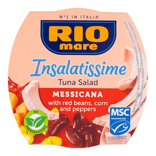 Kousky TUŇÁKA pruhovaného (Katsuwonus pelamis) 25 %, spařená quinoa 25 %, olivový olej, červená paprika 5, 5 %, žlutá paprika 5,5 %, mrkev 5,5 %, cuketa 5,5 %, zelené olivy 4,4 %, hrášek 4,4 %, kukuřice 4,4 %, jedlá sůl, mletý černý pepř, kurkuma, přírodní aroma.