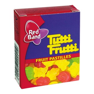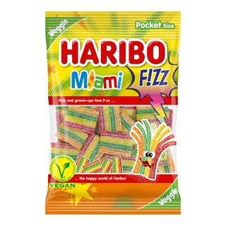 Cukr, PŠENIČNÁ MOUKA, glukózový sirup, *koncentrát hroznové šťávy 3,7 % = 15 % ovocné šťávy, rostlinné oleje (bambucký, kokosový), regulátory kyselosti (kyselina citronová, citronany sodné), zvlhčující látka (glycerol), aroma, želatina, emulgátor (mono- a diglyceridy mastných kyselin),barviva (kurkumin, brilantní modř FCF), leštící látka (šelak).
