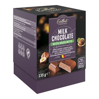 MLÉČNÁ čokoláda 40 % (cukr, plnotučné sušené MLÉKO (23 %), kakaové máslo, kakaová hmota, emulgátor:;lecitiny (SÓJOVÉ); vanilin), Cukr, odtučněné sušené MLÉKO (18 %), Palmový olej, MÁSELNÝ tuk, emulgátor: lecitiny;(SÓJOVÉ), Vanilin. Obsah mléčné sušiny: nejméně 33 % z celkové hmotnosti. Obsah kakaových složek: nejméně 13 % z;celkové hmotnosti.