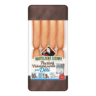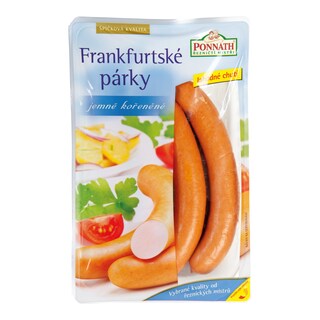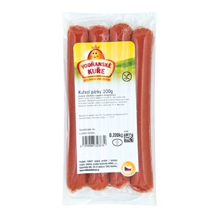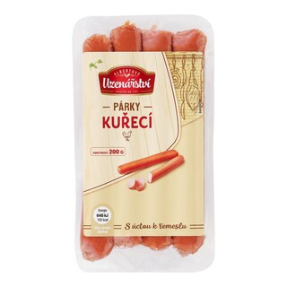 Kuřecí párky Pipi. Masný výrobek tepelně opracovaný. Určeno k přímé konzumaci.